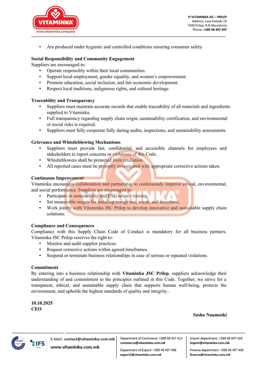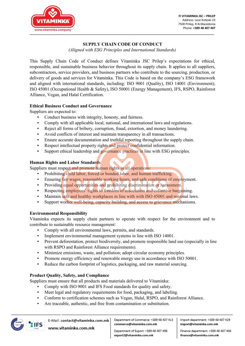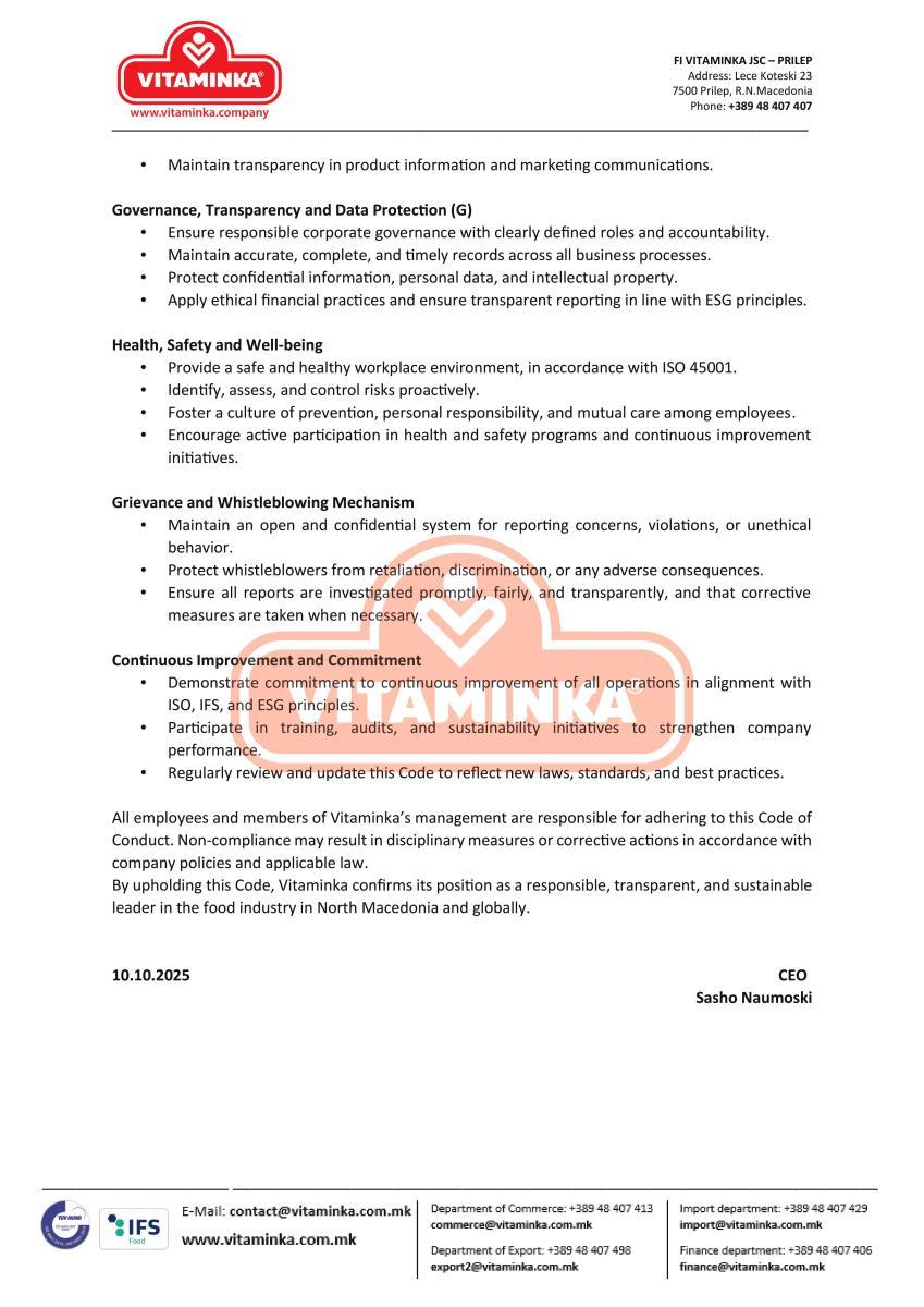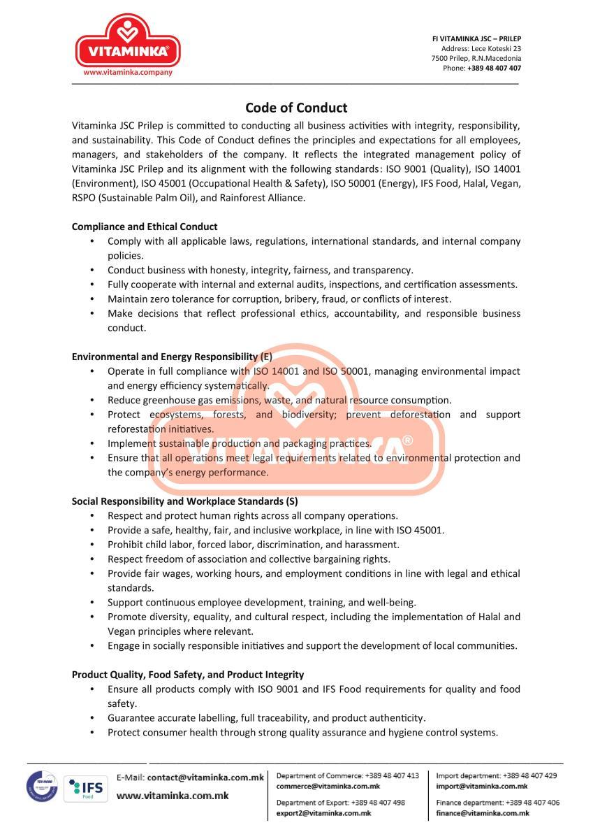 Social Responsibility - Company Codes - Vitaminka