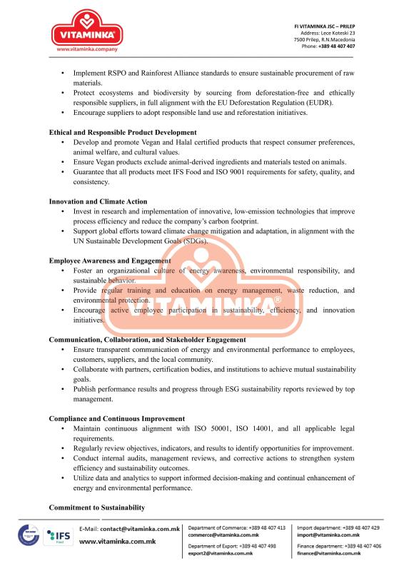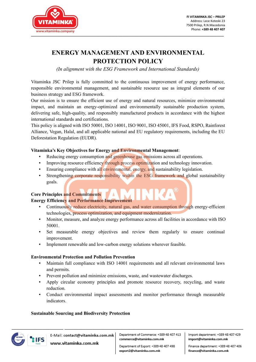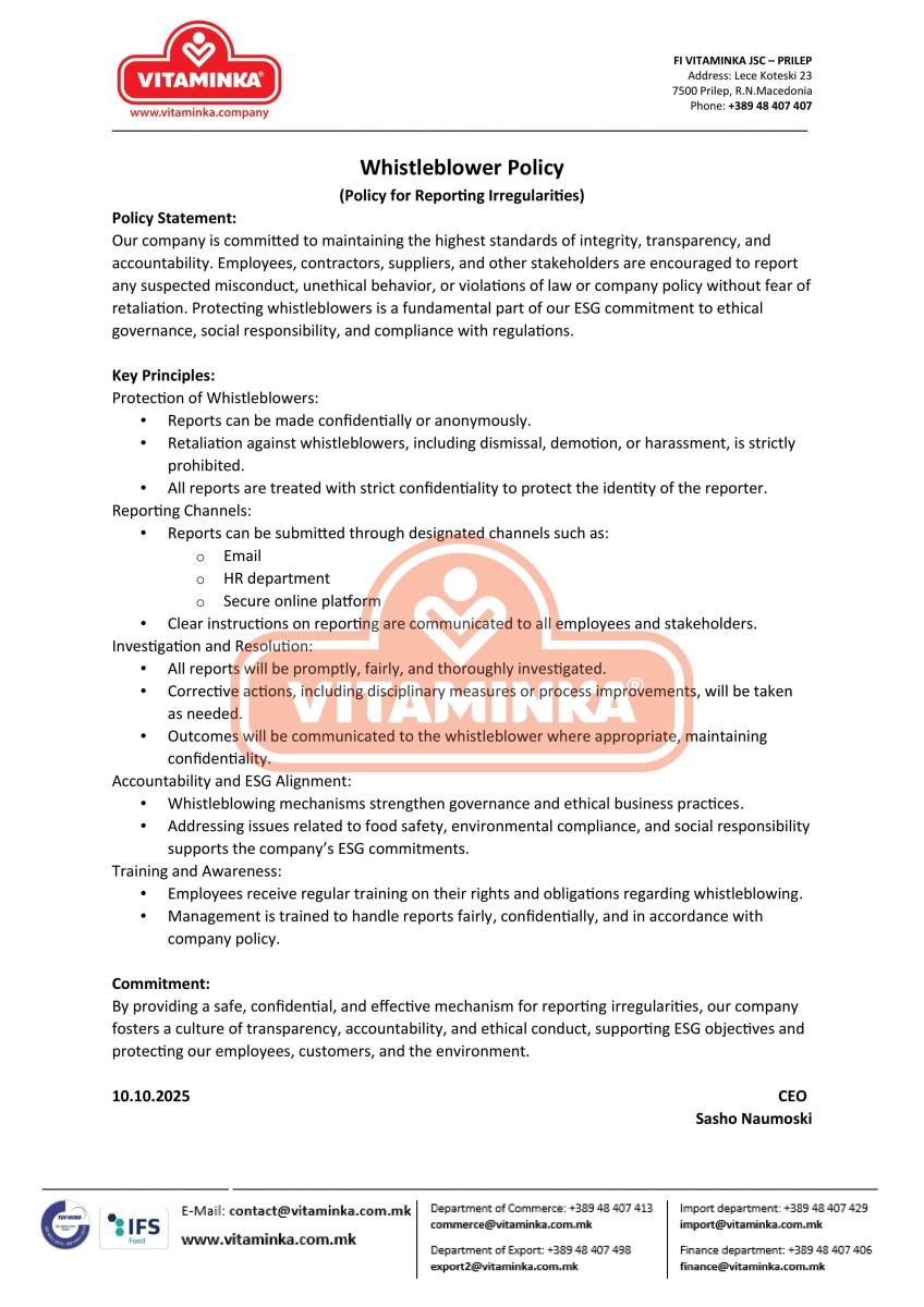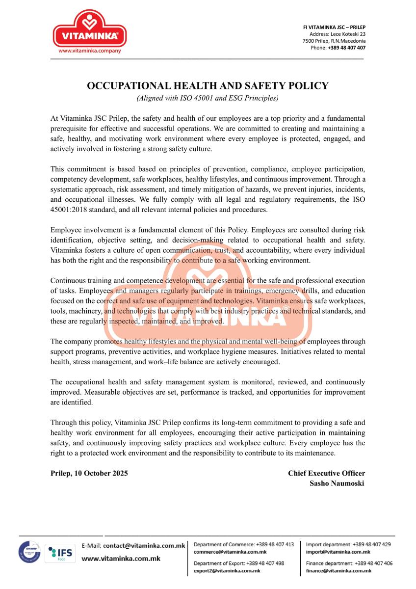 Social Responsibility - Company Codes - Vitaminka