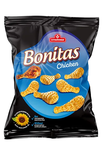 Bonitas sa ukusompiletine je pravo osveženje u svetu čipseva .Neobičnim  oblikom i odličnim ukusom je osvojio publiku u regionu.