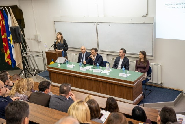 На настанот свое обраќање имаше Директорот на правни и општи работи Орде Ѓорѓиоски, кој ги апострофира најважните аспекти на соработката помеѓу академијата и бизнис секторот, особено нагласувајќи ја потребата од постоење соодветни програми што ќе ги следат трендовите поврзани со дигитализацијата, новите технологии и иновациите, креирање соодветен модел дуално високо образование, но и потребата од поттикнување и поддршка на младинското претприемништво, во функција на отворање нови бизниси коишто ќе прераснат во добавувачи на компаниите кои работат во градот и околината.