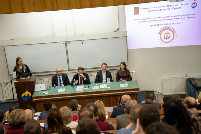 На ден 27.11.2025 година на Економскиот факултет во Прилеп при УКЛО, се одржа QUADRUPLE HELIX Форумот, за зајакнување на соработката помеѓу академската заедница, работодавачите, студентите и алумните од овој факултет.
